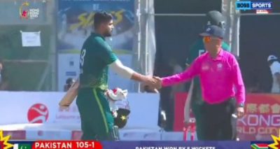 کپتان عباس آفریدی نے ٹاس جیت کر پہلے بولنگ کا فیصلہ کیا،ہدف کے تعاقب میں پاکستان نے 3.5 اوورز میں 105 رنز بنائے
