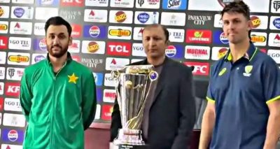 دونوں ٹیموں کے کپتانوں پاکستان کے سلمان علی آغا اور آسٹریلیا کے مچل مارش نے سیریز کی ٹرافی کی رونمائی کی