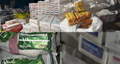 کارروائی کے دوران اسمگل شدہ غیر ملکی سگریٹس، گٹکا، بھارتی نسوار اور ایرانی خوردنی تیل کی بھاری مقدار برآمد ہوئی۔