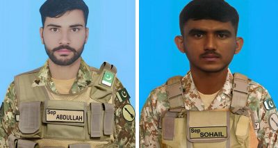 میر علی میں جھڑپ،شہید25سالہ عبداللہ مردان اور 19سالہ سہیل کا تعلق تھرپارکر سے ہے، جوانوں کی قربانیاں عزم کو مزید مضبوط کر تی، آئی ایس پی آر