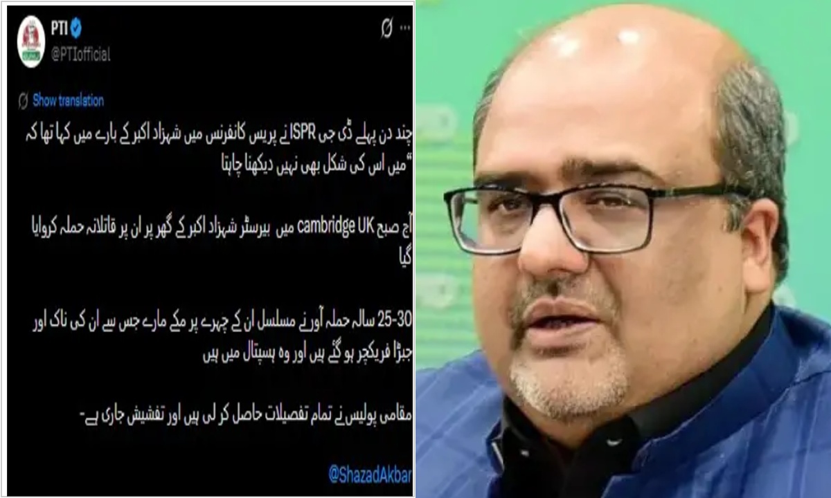 برطانیہ،شہزاد اکبر پرقاتلانہ حملہ،ہسپتال میں زیر علاج ہیں،پی ٹی آئی کا دعویٰ December 25, 2025 برطانیہ میں چند افراد شہزاد اکبر کے گھر پر آئے اور ان پر حملہ کیا۔ حملہ آور شہزاد اکبر کو…