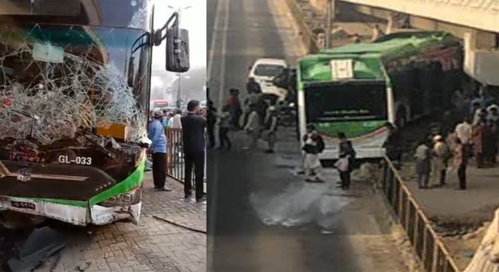 کراچی،بچے کو بچاتے گرین لائن بس فٹ پاتھ پر آگئی February 24, 2023 یہ حادثہ کراچی کے علاقے ناگن چورنگی کے قریب پیش آیا ہے۔حادثے میں ڈرائیور اور خواتین سمیت متعدد افراد زخمی ہوئے