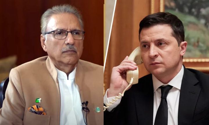 یوکرین نے پاکستان سے اقوام متحدہ میں حمایت مانگ لی February 22, 2023 صرعارف علوی کو یوکرین ہم منصب ولادی میر زیلنسکی کا فون ۔یوکرین کے دورے کی دعوت بھی دی