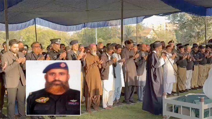 کراچی پولیس آفس پر حملے کےپانچویں شہید کی نماز جنازہ ادا February 19, 2023 شہید پولیس اہلکار عبداللطیف جمعے کو حملے میں زخمی ہوئےتھے، آج دوران علاج چل بسے