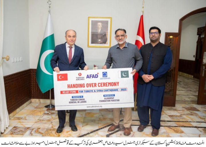 الخدمت فاؤنڈیشن کی جانب سے شام اور ترکیہ امداد February 16, 2023 وقاص جعفری نے ترکیہ کے قونصل جنرل امیر اوزبے سے ملاقات کی اور امدادی سامان ان کے حوالے کیا