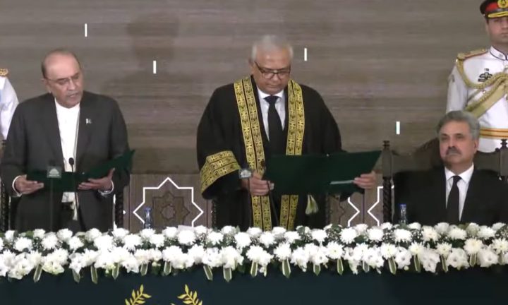 وفاقی آئینی عدالت کے ججوں کی تعداد میں اضافہ- جسٹس امین الدین نے پہلے سربراہ کا حلف اٹھا لیا November 14, 2025 صدر زرداری نے آئینی عدالت کے سربراہ سے حلف لیا- چیف جسٹس پاکستان یحییٰ آفریدی بھی موجود تھے