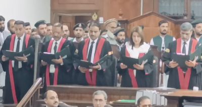 پشاور ہائیکورٹ کے چیف جسٹس اشتیاق ابراہیم نے نئے ایڈیشنل ججز سے حلف لیا، حلف برداری کی تقریب پشاور ہائیکورٹ میں منعقد ہوئی۔