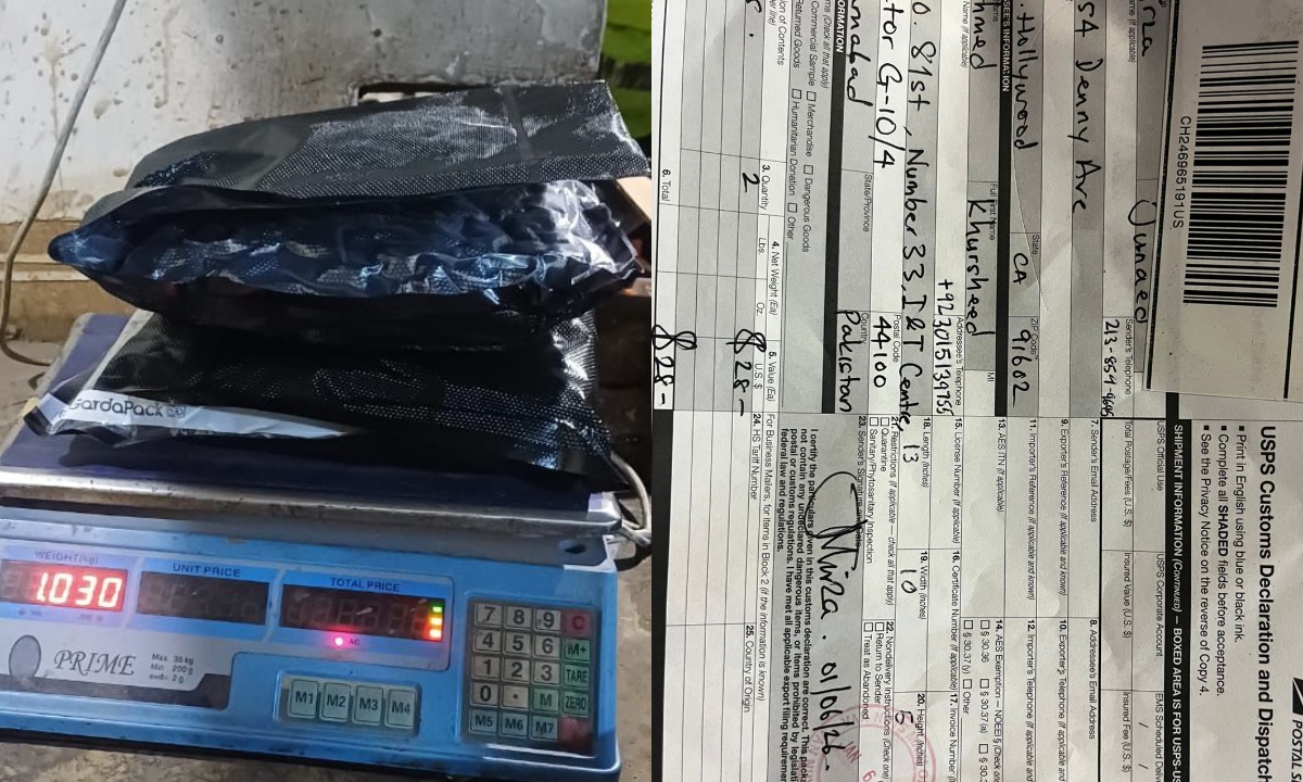 ایئر کارگو یونٹ نے3کروڑ روپے سے زائد مالیت کی چرس اسمگلنگ ناکام بنا دی January 16, 2026 یہ چرس امریکہ سے آنے والے ایک پارسل میں چھپائی گئی تھی، جسے جعلی طور پر “کتابیں” ظاہر کیا گیا…