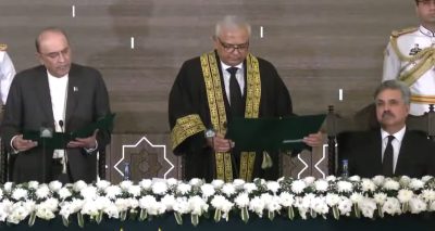 وفاقی آئینی عدالت کے ججوں کی تعداد میں اضافہ- جسٹس امین الدین نے پہلے سربراہ کا حلف اٹھا لیا 14 نومبر 2025 صدر زرداری نے آئینی عدالت کے سربراہ سے حلف لیا- چیف جسٹس پاکستان یحییٰ آفریدی بھی موجود تھے Read More »