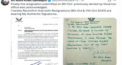 Read More »اپنے دونوں استعفے 8 اور 11 اکتوبر کو اپنے مستند دستخط کے ساتھ جمع کرائے تھے 8 اکتوبر کا استعفیٰ، جسے پہلے مسترد کیا گیا تھا