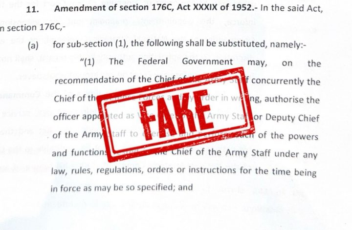 وائس چیف یا ڈپٹی آرمی چیف کی تعیناتی کا فیک سکرین شاٹ وائرل November 13, 2025 پاکستان آرمی ایکٹ آرٹیکل 176سی میں صرف آرمی چیف کو چیف آف ڈیفنس مقررکرنے کی ترمیم ہوئی ہے۔ذرائع
