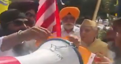 خالصتان کے پرچم اٹھائے مظاہرین نے بھارت مردہ باد اور قاتل مودی کے نعرے لگائے اور بھارتی جھنڈے کے ٹکڑے کر کے سفارتخانے کے سامنے پھینک دیے۔