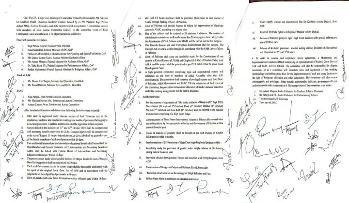 آزاد کشمیر میں طے پانے والے معاہدے کا متن سامنے اگیا October 4, 2025 عمل درآمد کے لیے اعلی سطح کی مانیٹرنگ کمیٹی قائم۔کمیٹی فیصلوں پر عملدرآمد اور تنازعات کے حل کی ذمے دار…