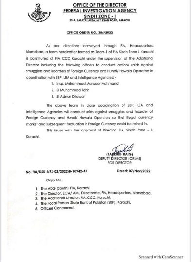 ہنڈی اور غیر قانونی کرنسی کاروبار کرنے والوں کیخلاف کریک ڈاؤن ہو گا November 12, 2022 فیٹف سیکرٹریٹ کی تجاویز پر کراچی میں ایف آئی اے کی پانچ ٹیمیں تشکیل دے دی گئیں